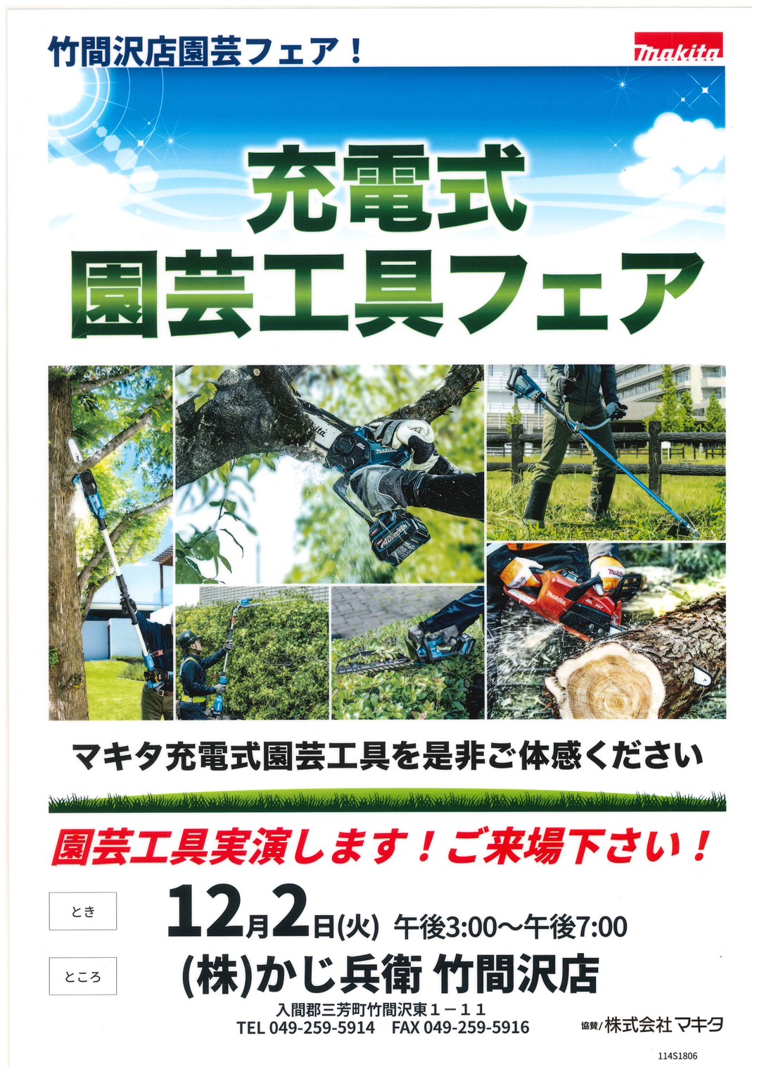 プロの職人の仕事をサホー トする商品の品揃え ・ 在庫数、 そして価格に自信あり 。 埼玉県三芳町にあるかじ兵衛竹問沢店。
