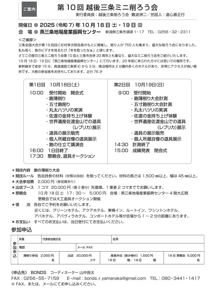 【代表来場】第十回越後三条ミニ 削ろう会10/18 19 ※薄削り参加詳細はコチラから