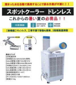 【熱中症対策】スポットクーラードレンレス!工事不要!風量2段階調整